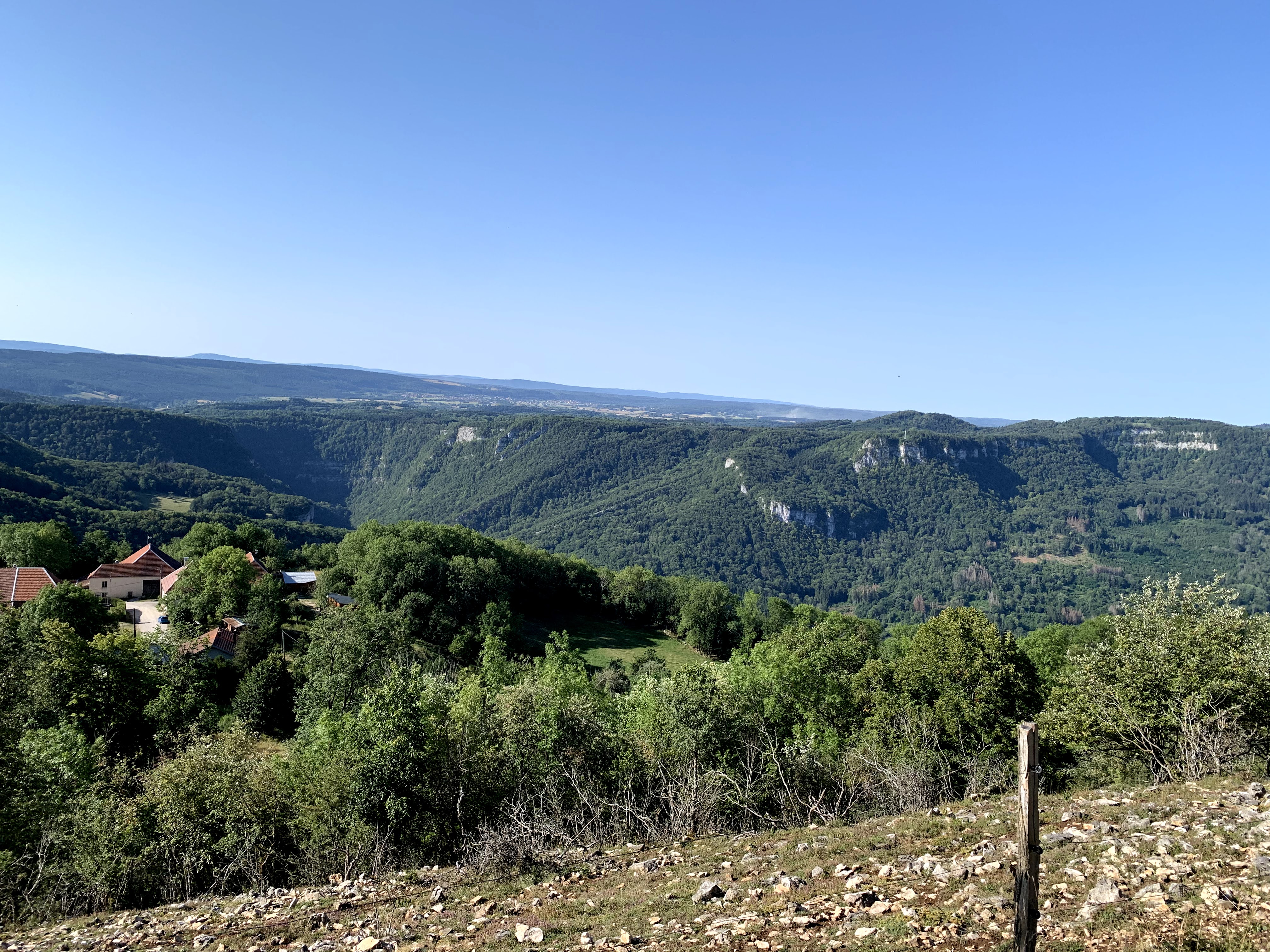 Les marches du sentier sont un peu hautes et caillouteuses, l'ascension et la descente de ce fait nécessitent une certaine vigilance. En haut la vue sur la vallée est magnifique et vertigineuse de tous cotés. Un bol d'air extremement revigorant. De retour en bas pres du parking nous avons pu profiter d'un distributeur de comté et morbier, savoureux et a un prix correct. Que du bonheur!