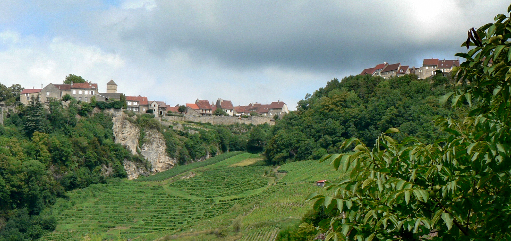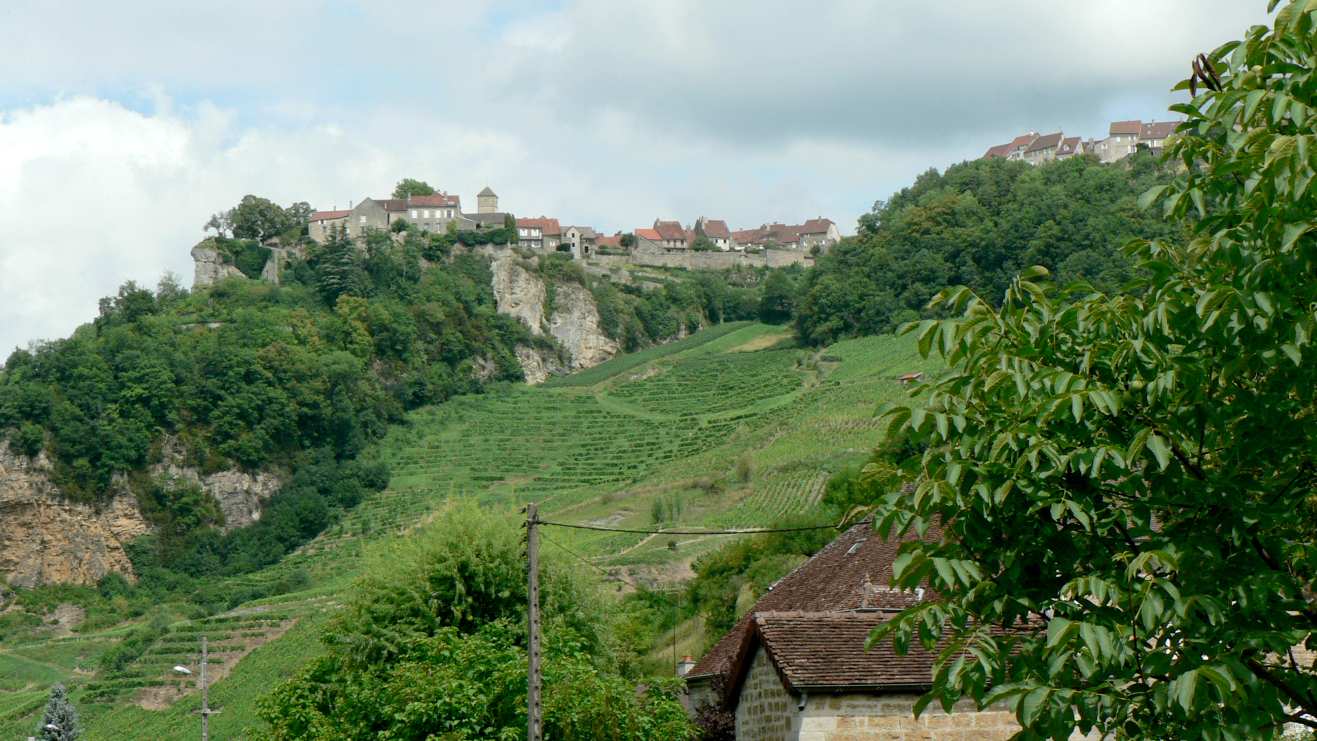 Château-Chalon est un très beau village perché situé sur une arête qui domine des coteaux viticoles. Le vue depuis le village sur les coteaux est très belle aussi.