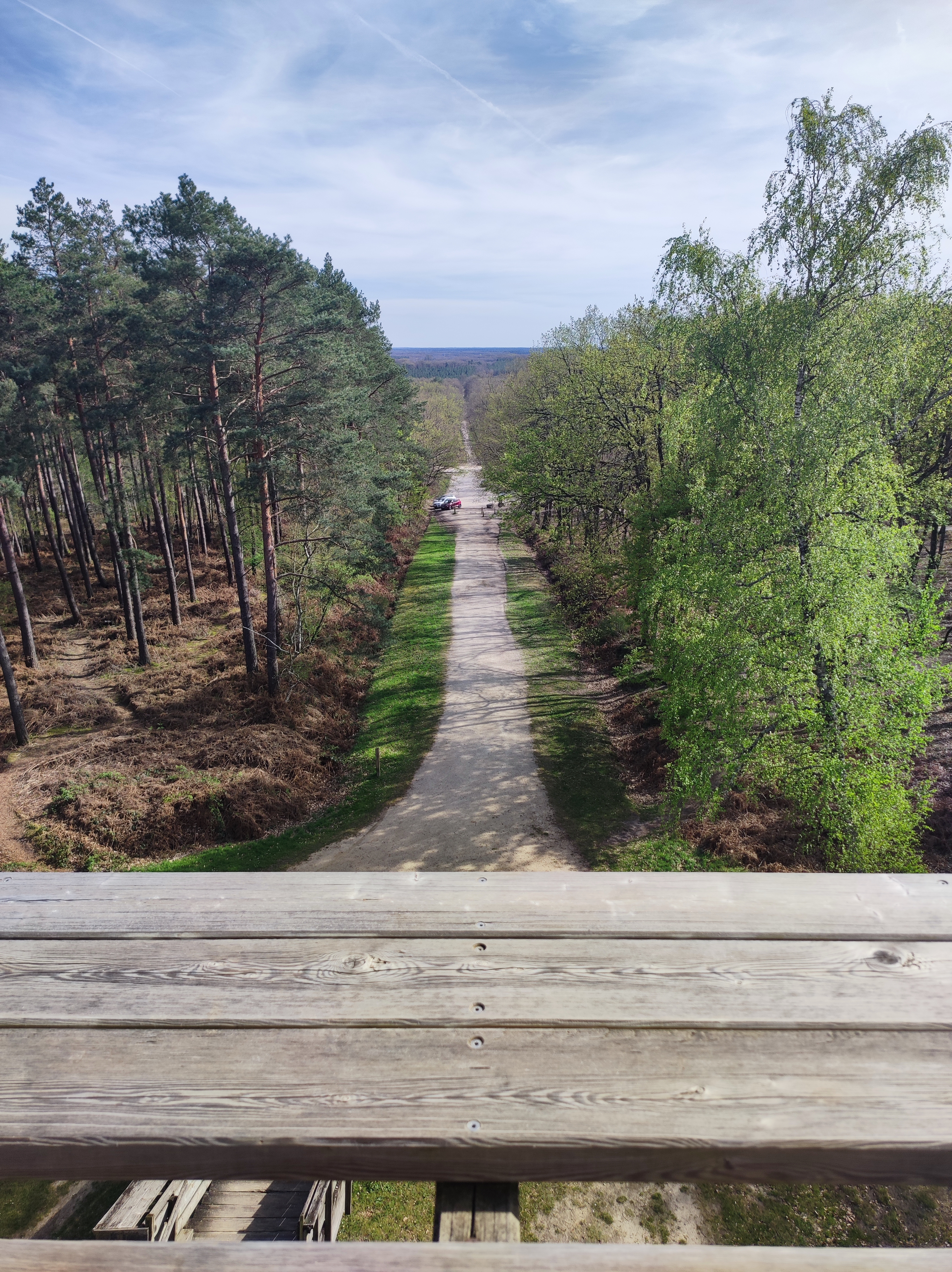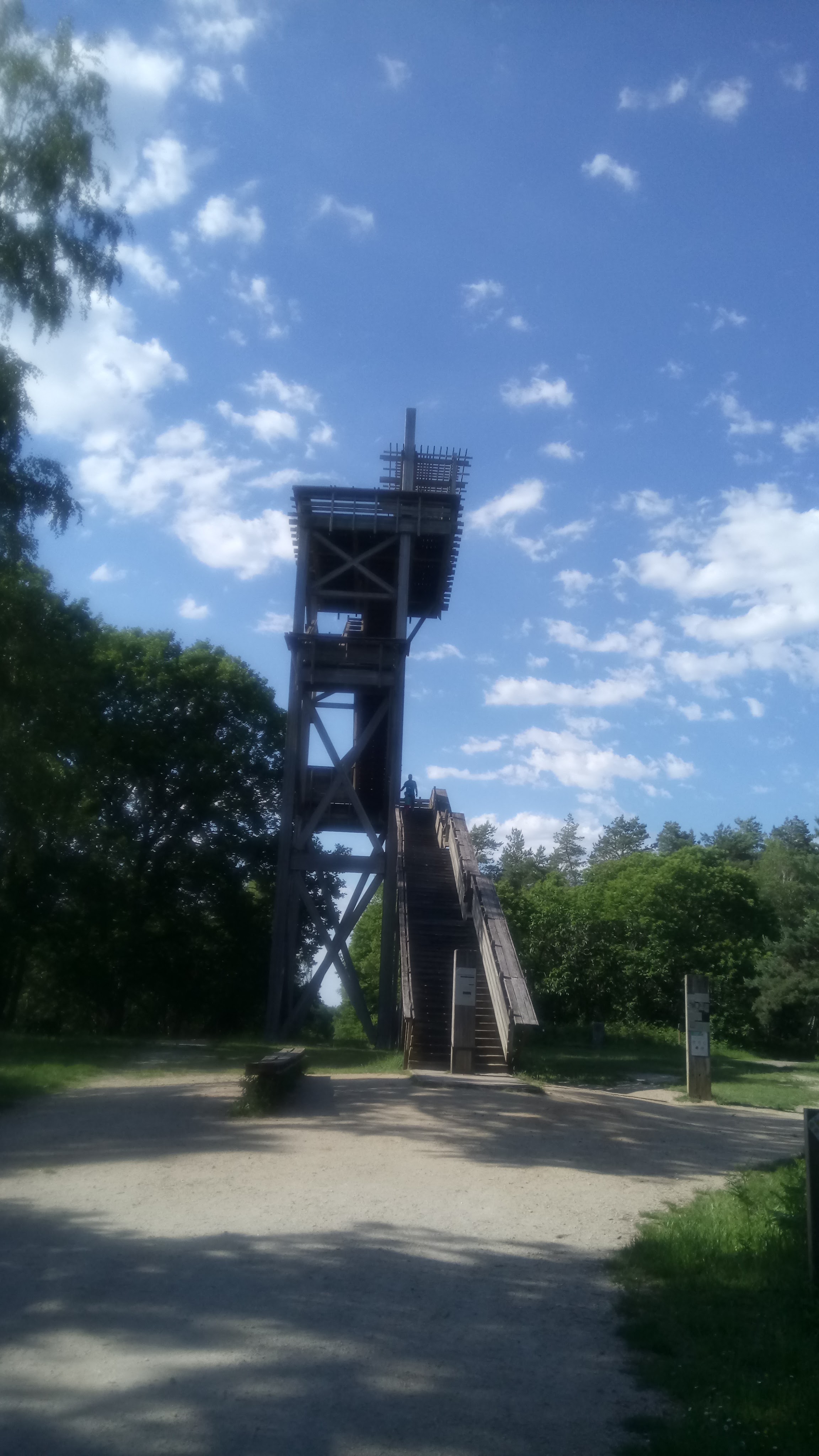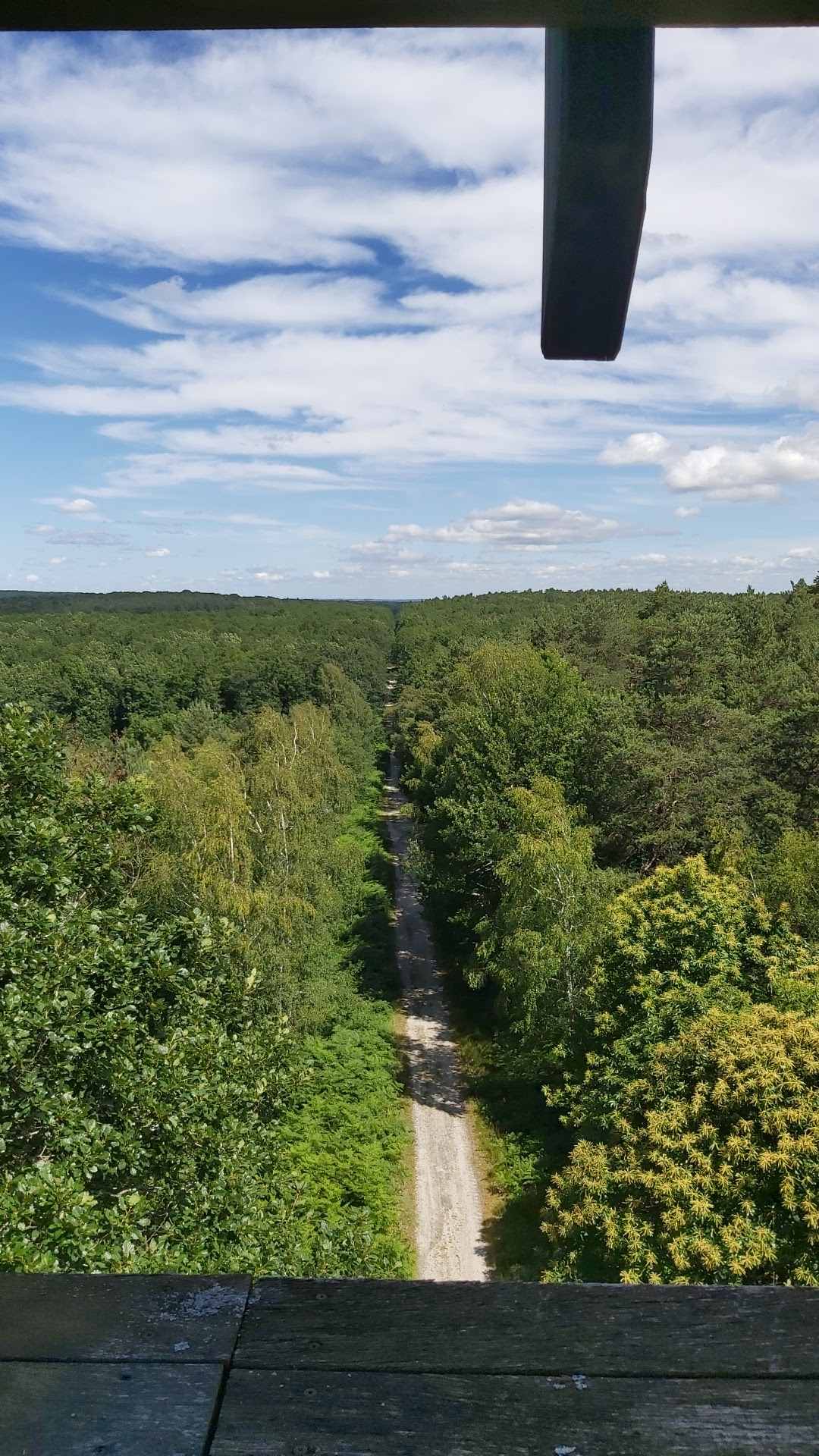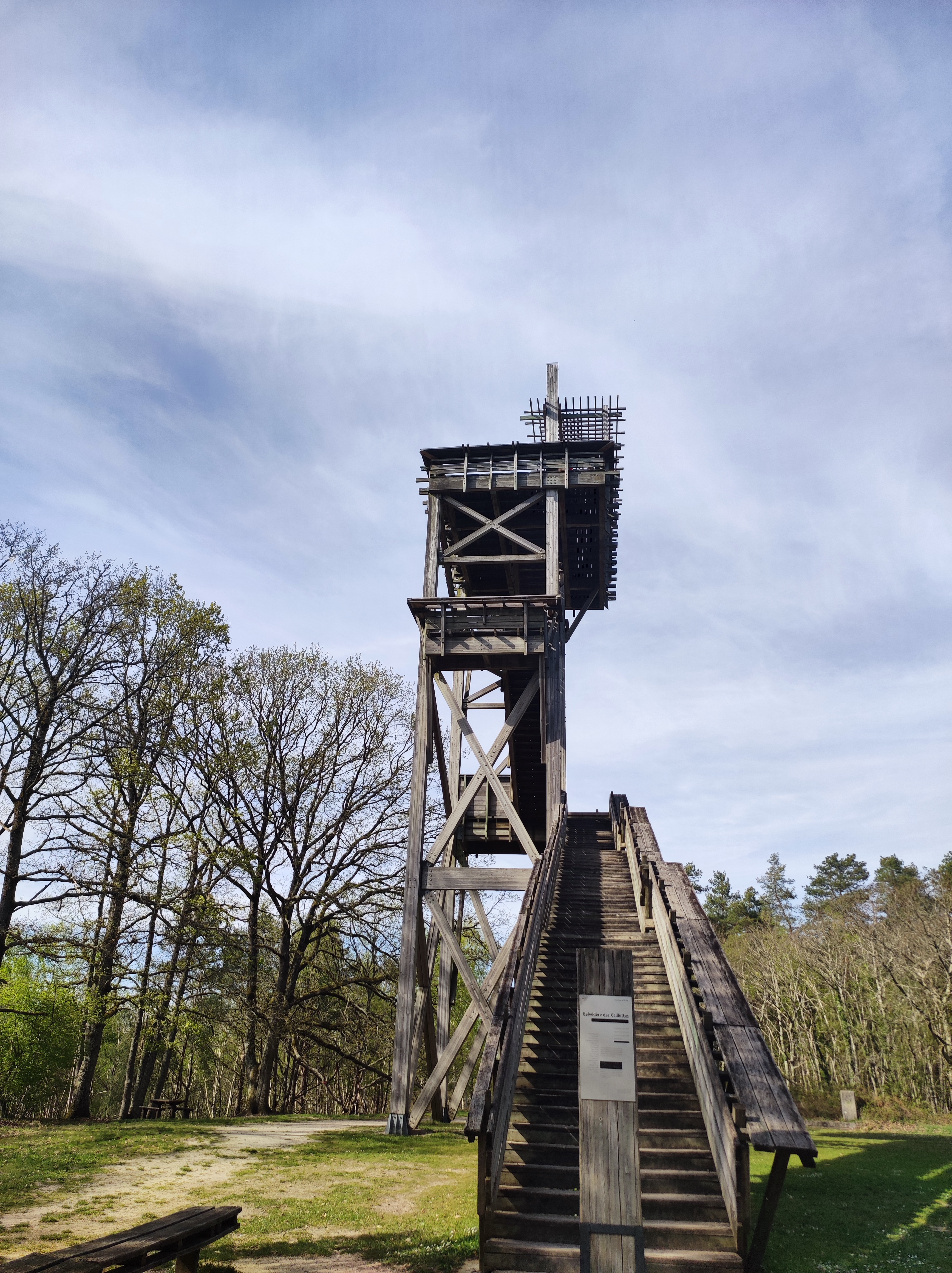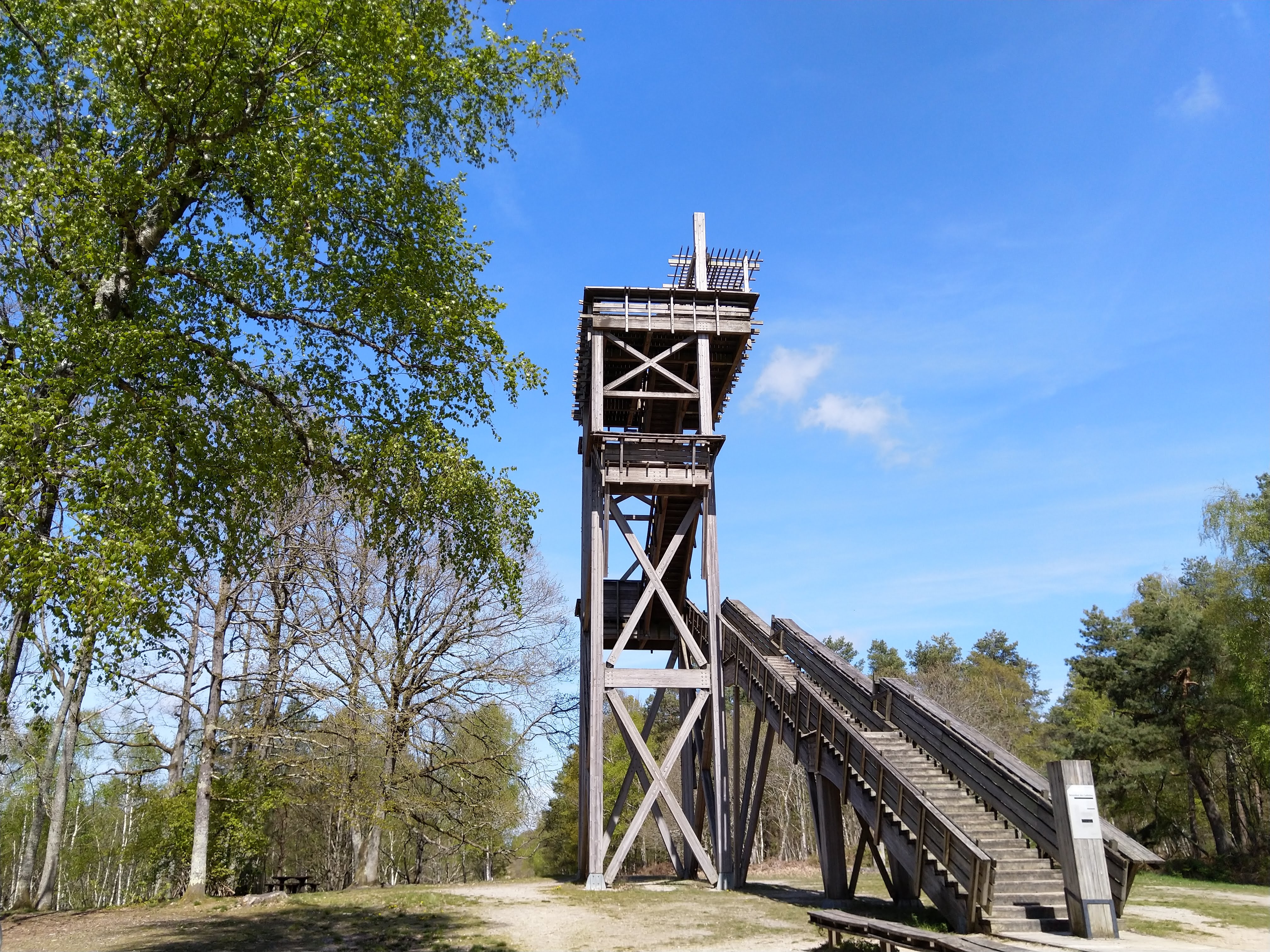 Un spot à ne pas manquer. Le belvédère nous emmène jusqu'au dessus des arbres pour y voir la forêt à perte de vue. On peut apercevoir certains bâtiments des villes voisines. La clairière qui se trouve juste à côté permet de s'installer tranquillement pour pique-niquer. Plusieurs promenades sont envisageables autour du belvédère.
