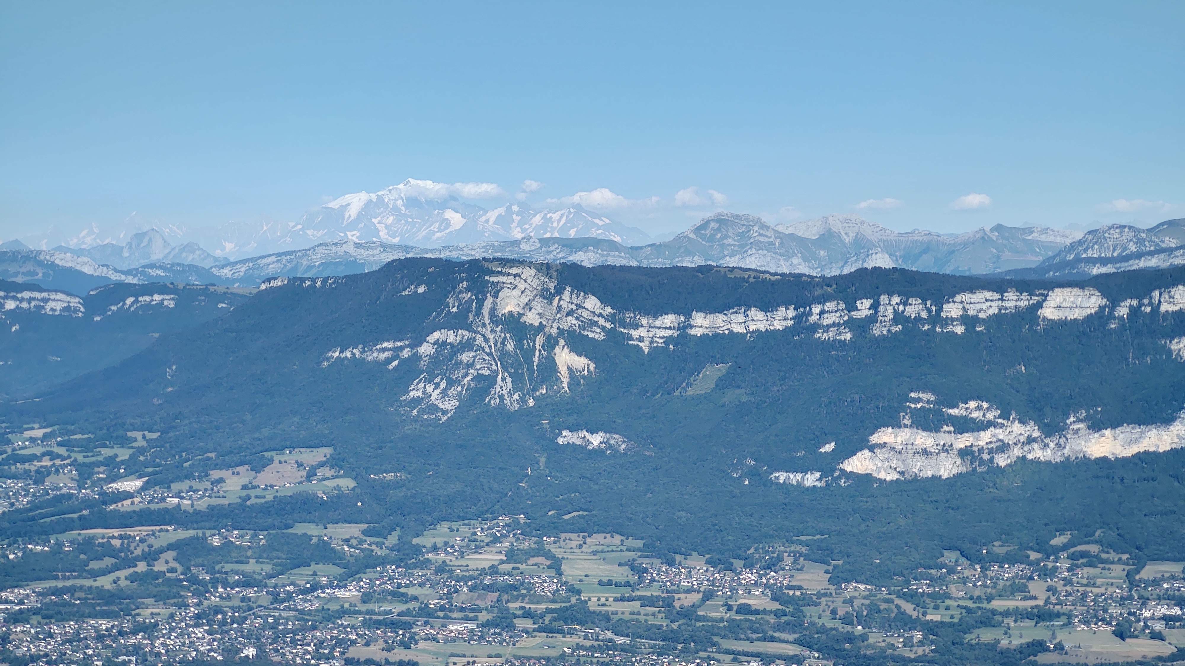 Après une montée longue de 12 km mais pleine de virages et surtout un sacré dénivelé, on est récompensé par le spectacle époustouflant, le Lac, les Bauges, les Écrins, Chambéry, et le massif du Mont Blanc.