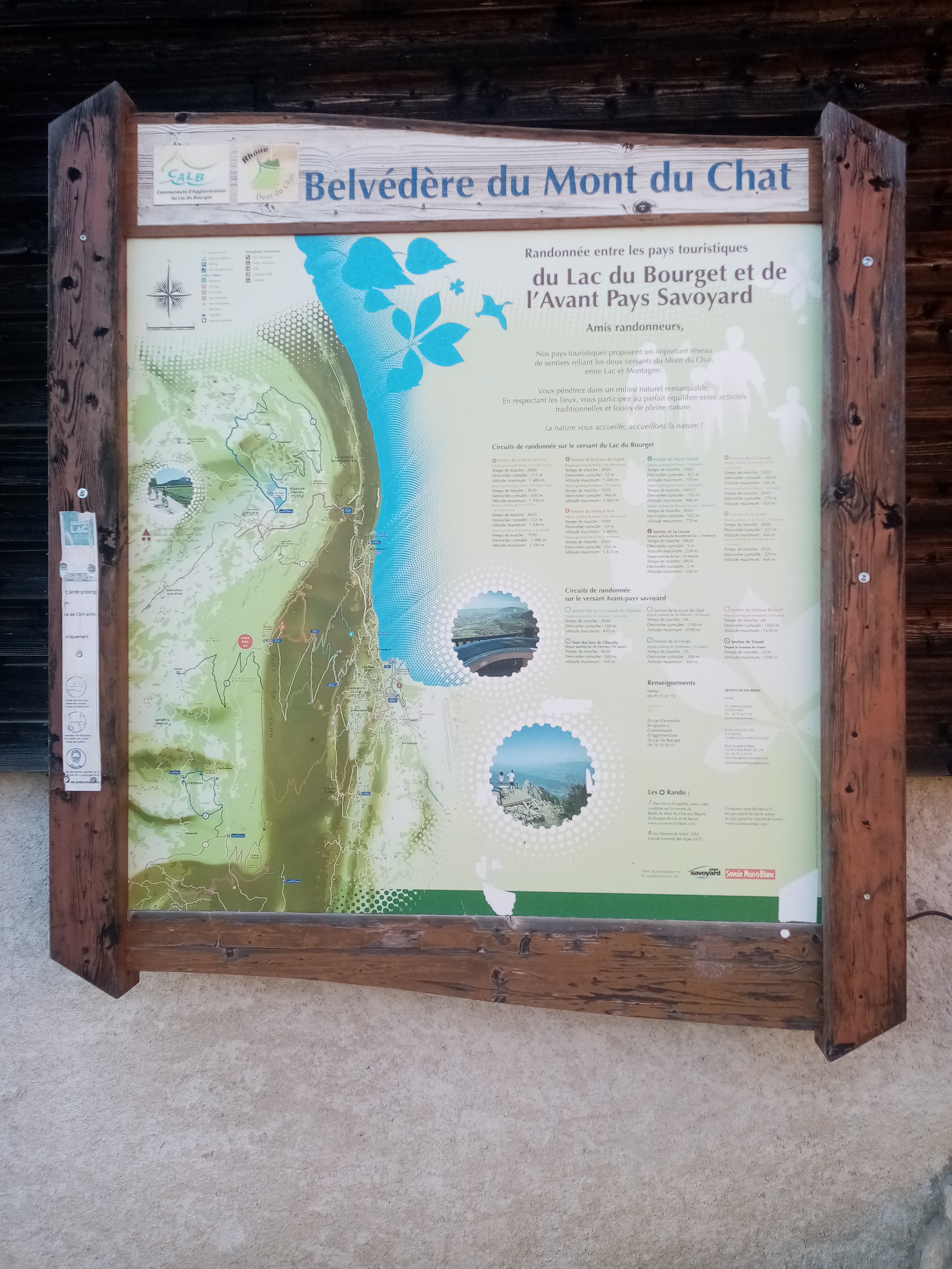 Environ 1/2 heure pour monter par la petite route étroite qui part du village du Bourget, mais arrivés en haut, quelle vue !!chemin de randonnée qui part du Belvédère pour aller voir la dent du chat. Et un petit resto sympa pour boire un coup avant de redescendre.