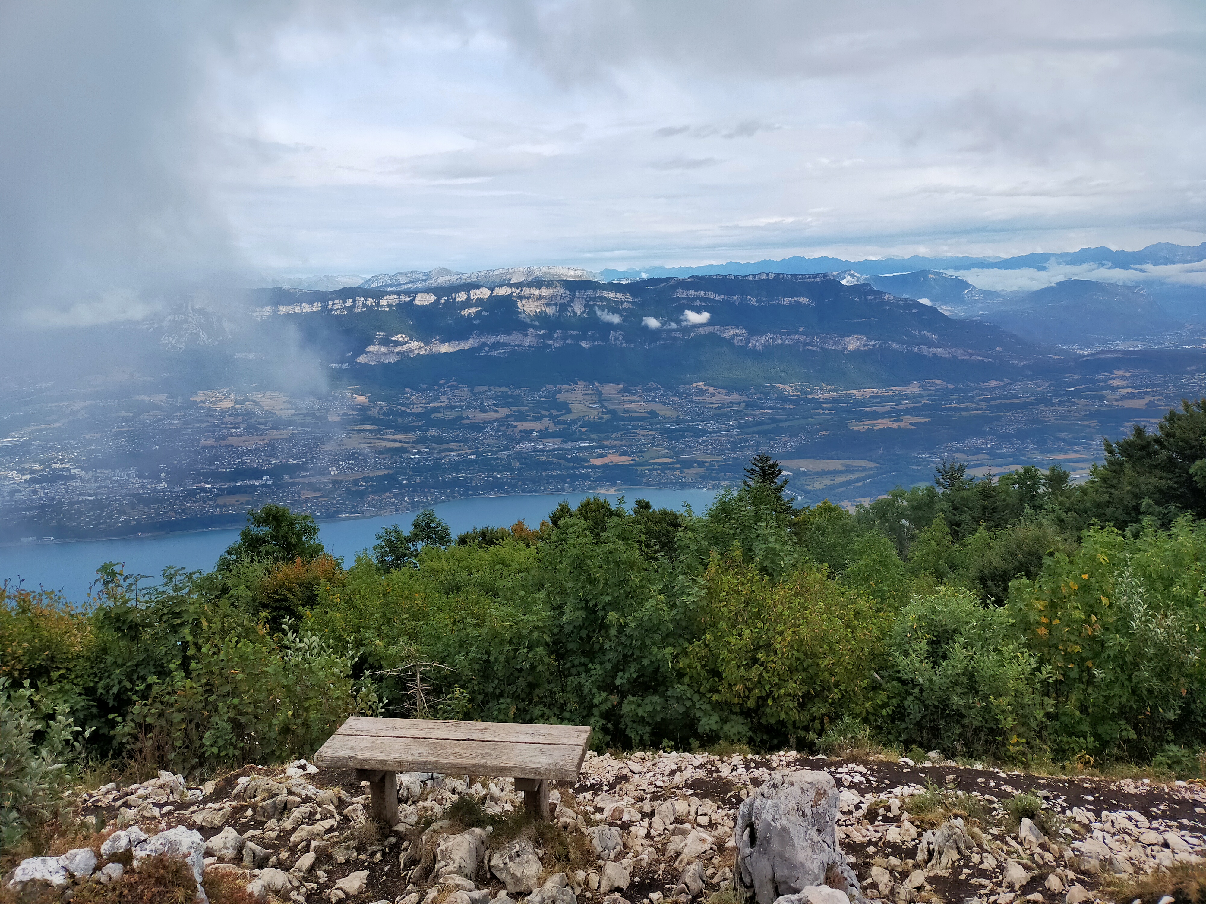 Balade familiale à partir du parking en haut. Vue panoramique sur le lac du bourget. Le temps était plutôt à l'orage mais nous avons quand même eu une très belle vue.