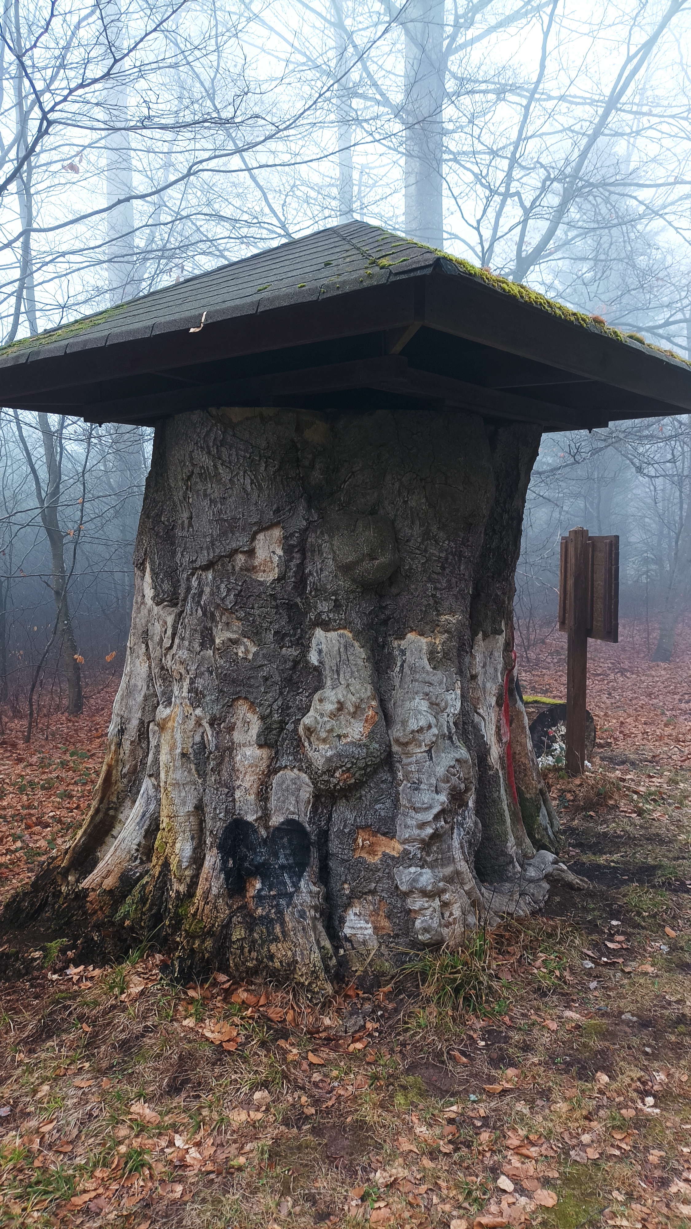 L'arbre devait être immense avant de casser. C'est très bien d'avoir protégé ce qu'il en reste, ça donne une idée de la taille. Il y a un grand parking tout proche d'où partent plusieurs randonnées.