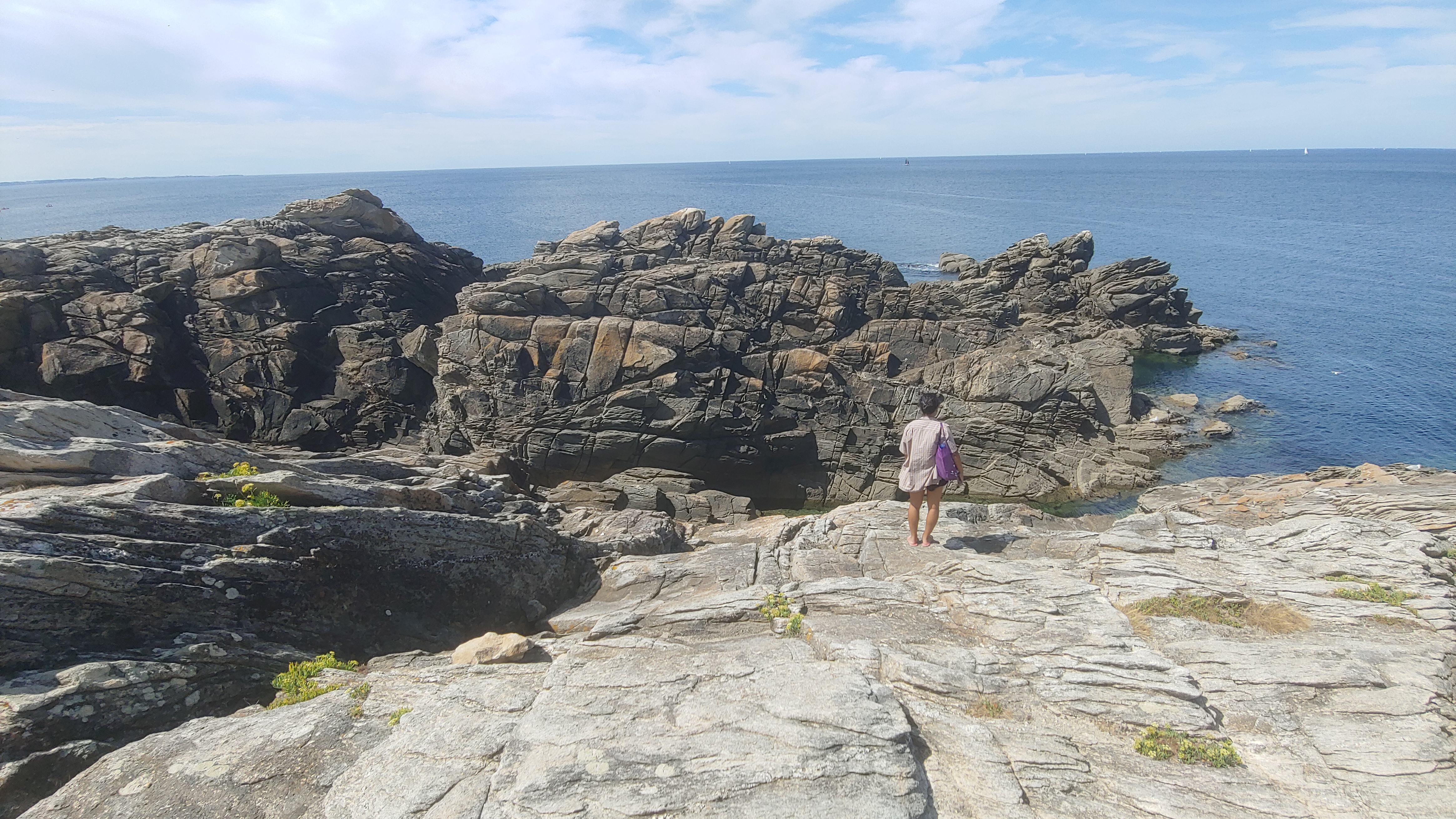 Une de nos plus belles promenade durant nos vacances. Nous avons commencé le circuit du côté du château Turpault à pieds puis nous avons longé la côté sauvage jusqu'au camping de Kerné. N'hésitez pas à prendre le bus car le tour de l'île est long, et il y a de nombreux points de vue magnifiques. Pensez à prendre crème solaire et casquette, car il y a très peu d'ombre.