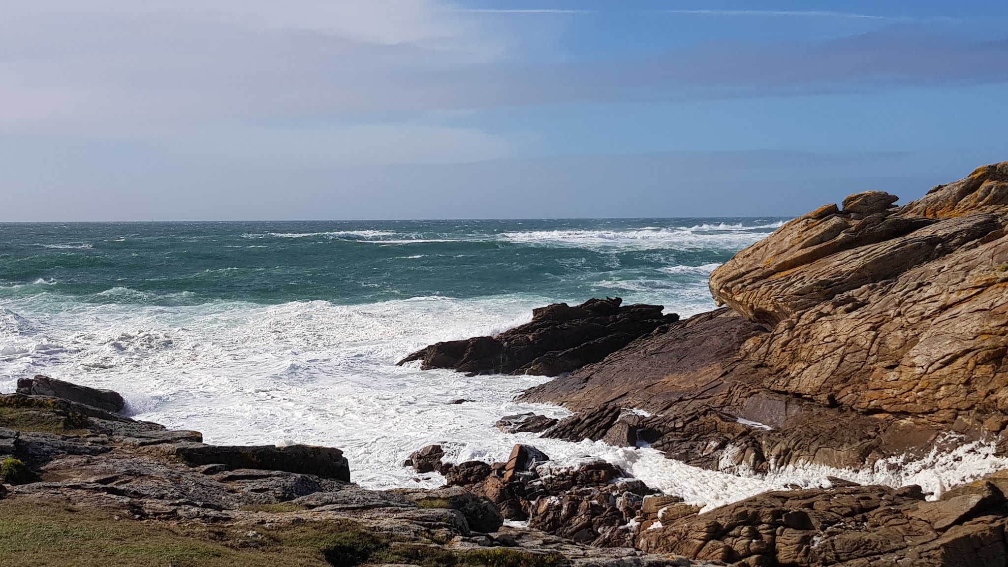 Tempête sur Quiberon, magnifique. Écume, vagues.... Que du bonheur, un air vivifiant et ressourçant. Très important pour l équilibre. Je recommande vivement.
