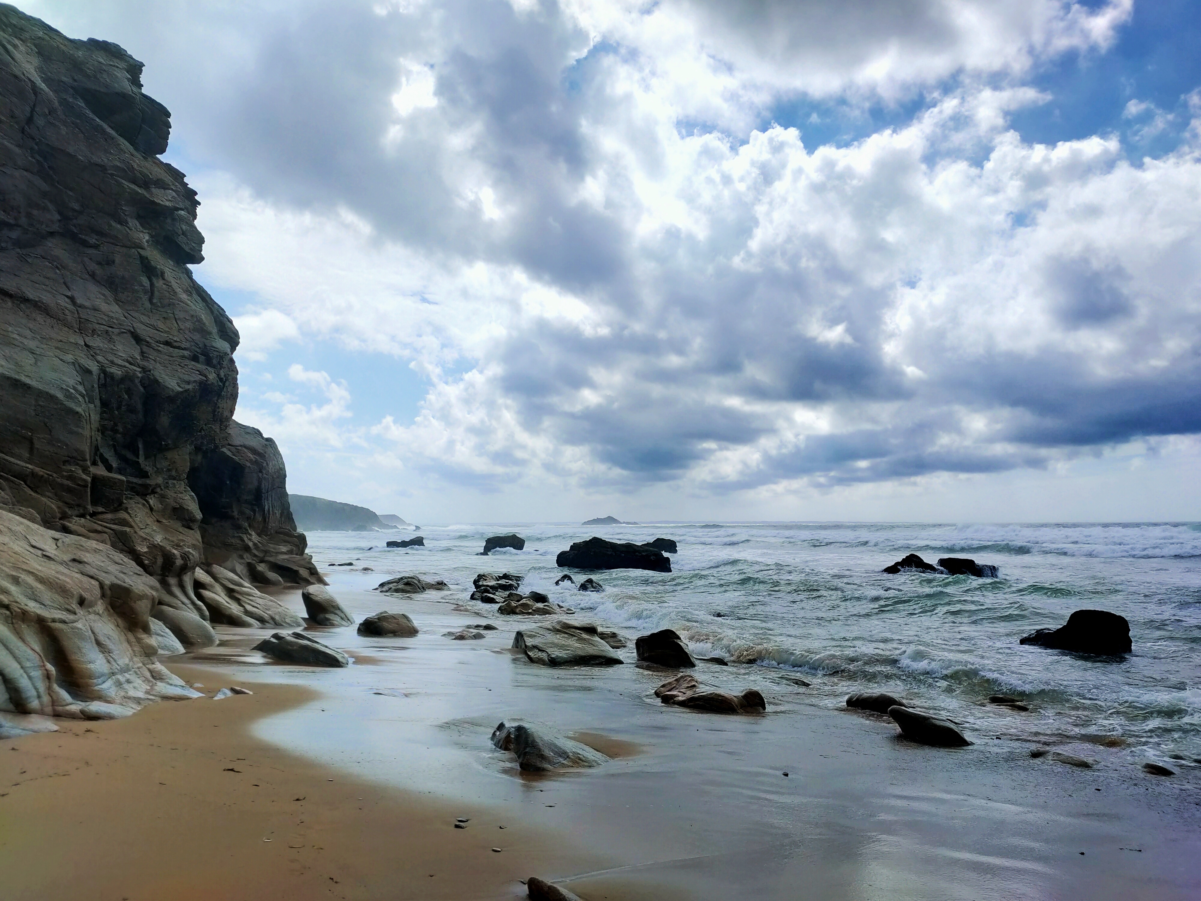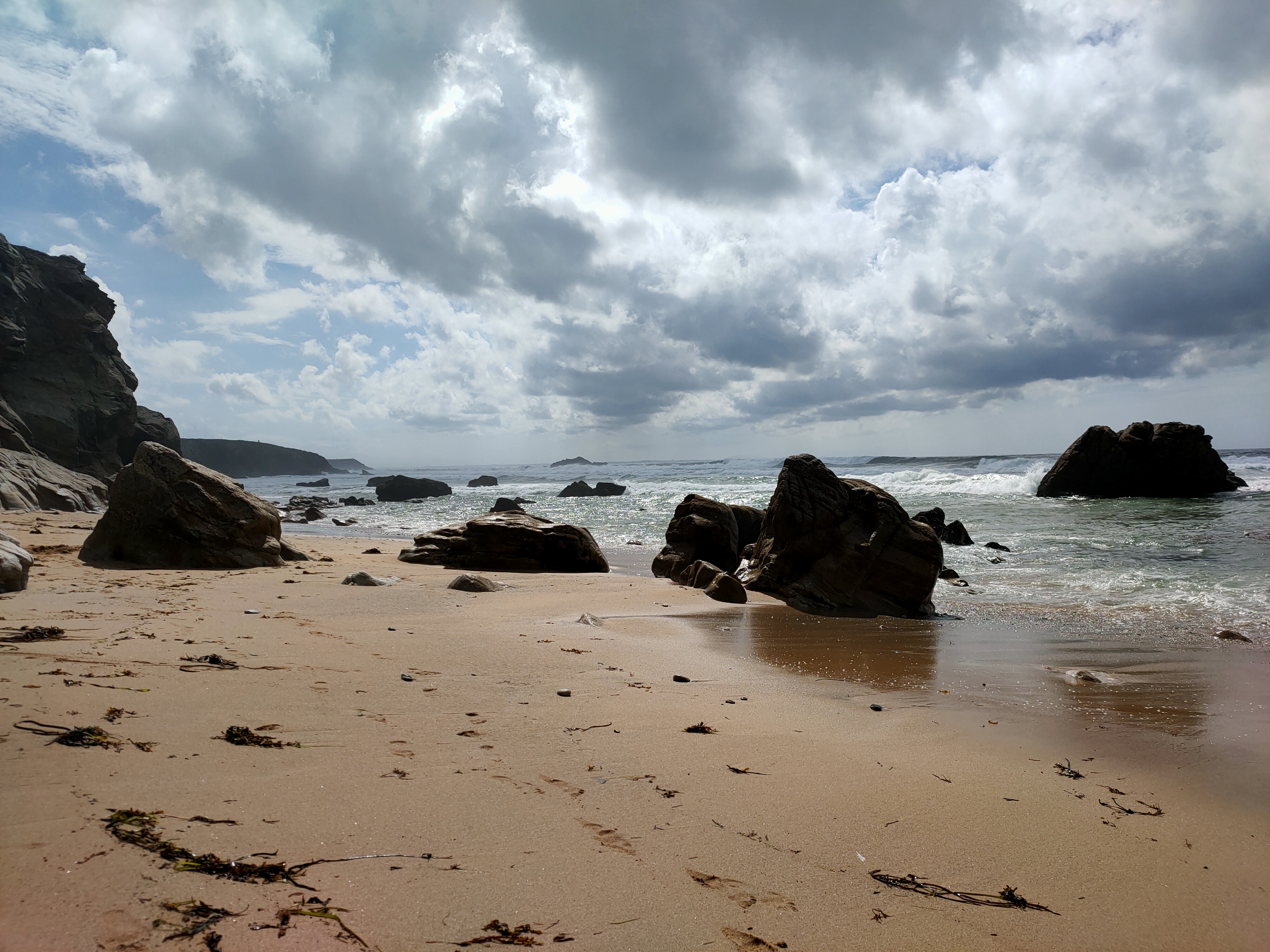 Merveille de la nature cette côte sauvage toute découpée, sans végétation. Criques de sable encastrées dans des rochers. Violence de la mer, du vent. Magnifiques promenades, rencontre avec des mégalithes