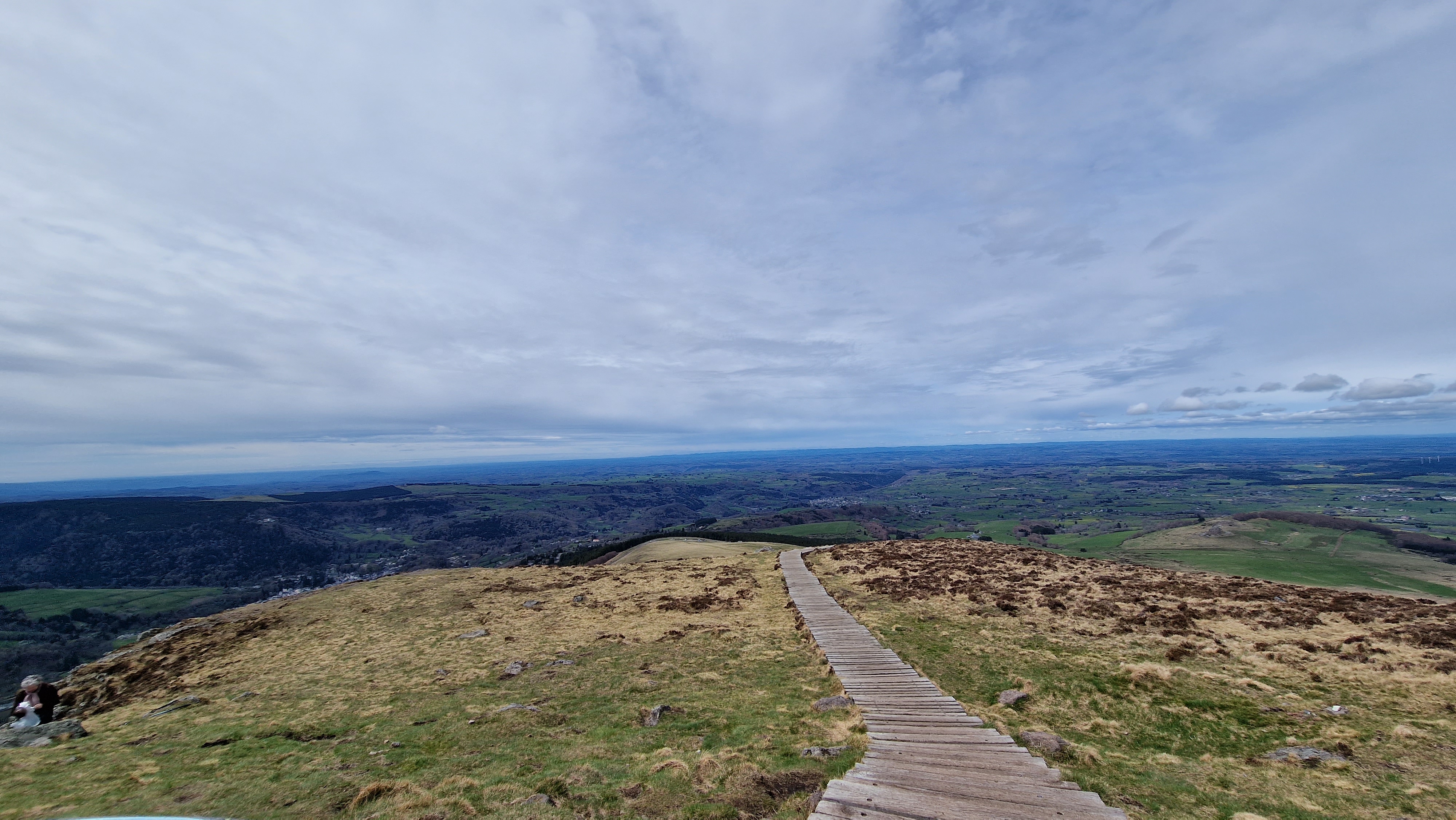 Point de vue magnifique sur toute la chaîne des volcans d'Auvergne, le Puy de Dôme d'un côté, le Puy du Sancy de l'autre.