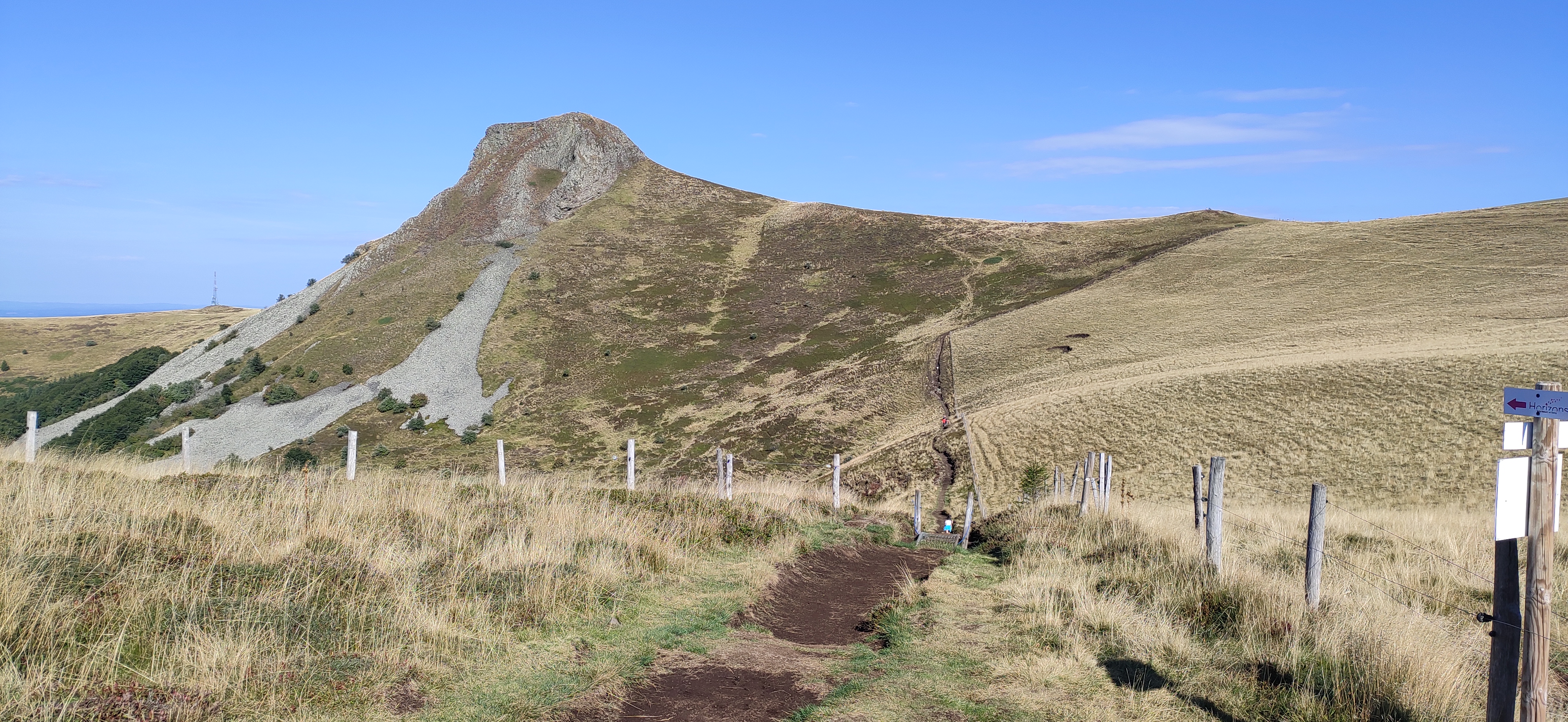 Magnifique balade. Vue exceptionnelle sur les 2 chaînes de volcan avec vue sur le sancy et le Puy dôme. Recommande.