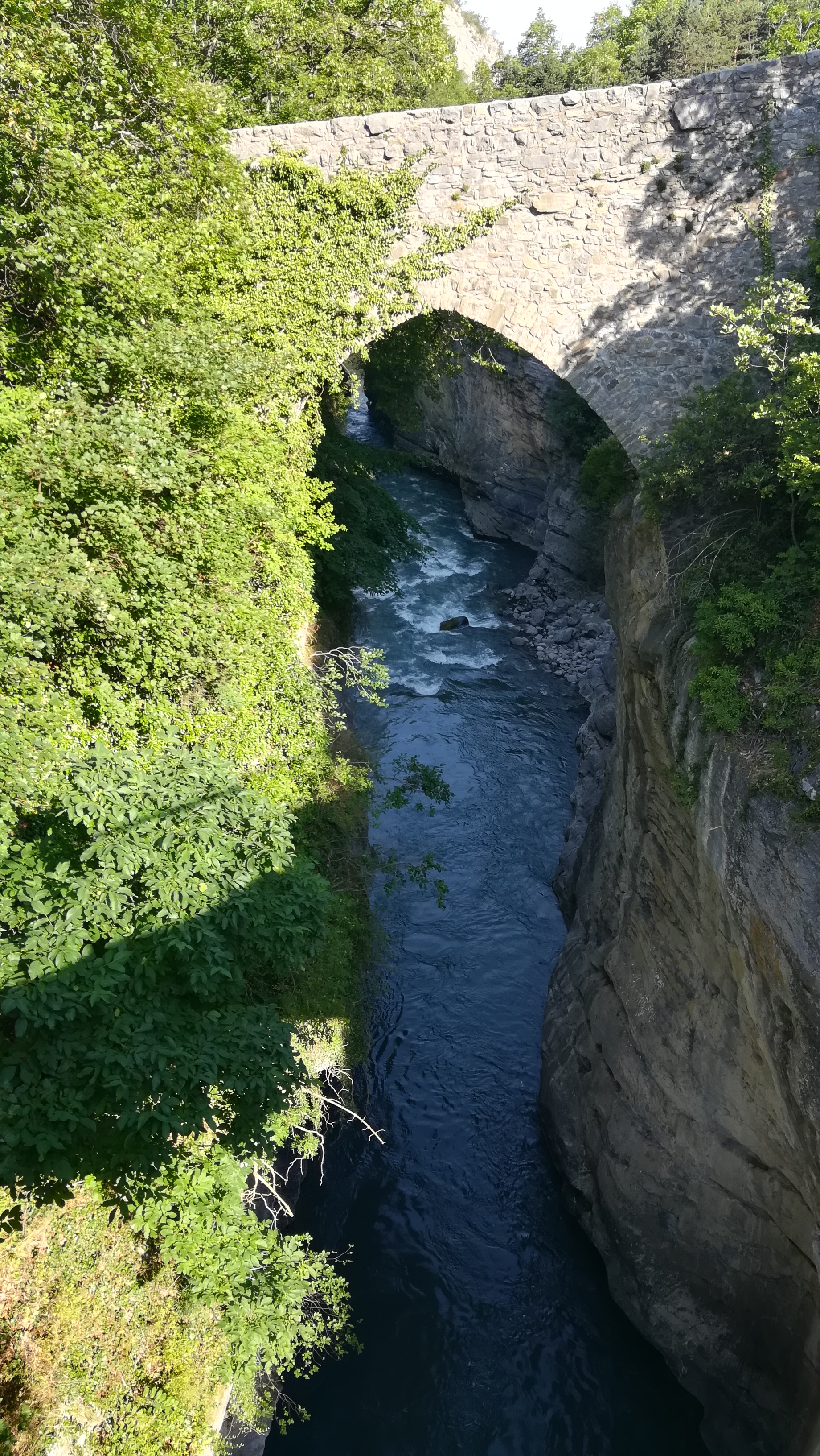 Très jolis ponts Romans, l’Ubaye passe au dessous, vision sur le raft qui passe…