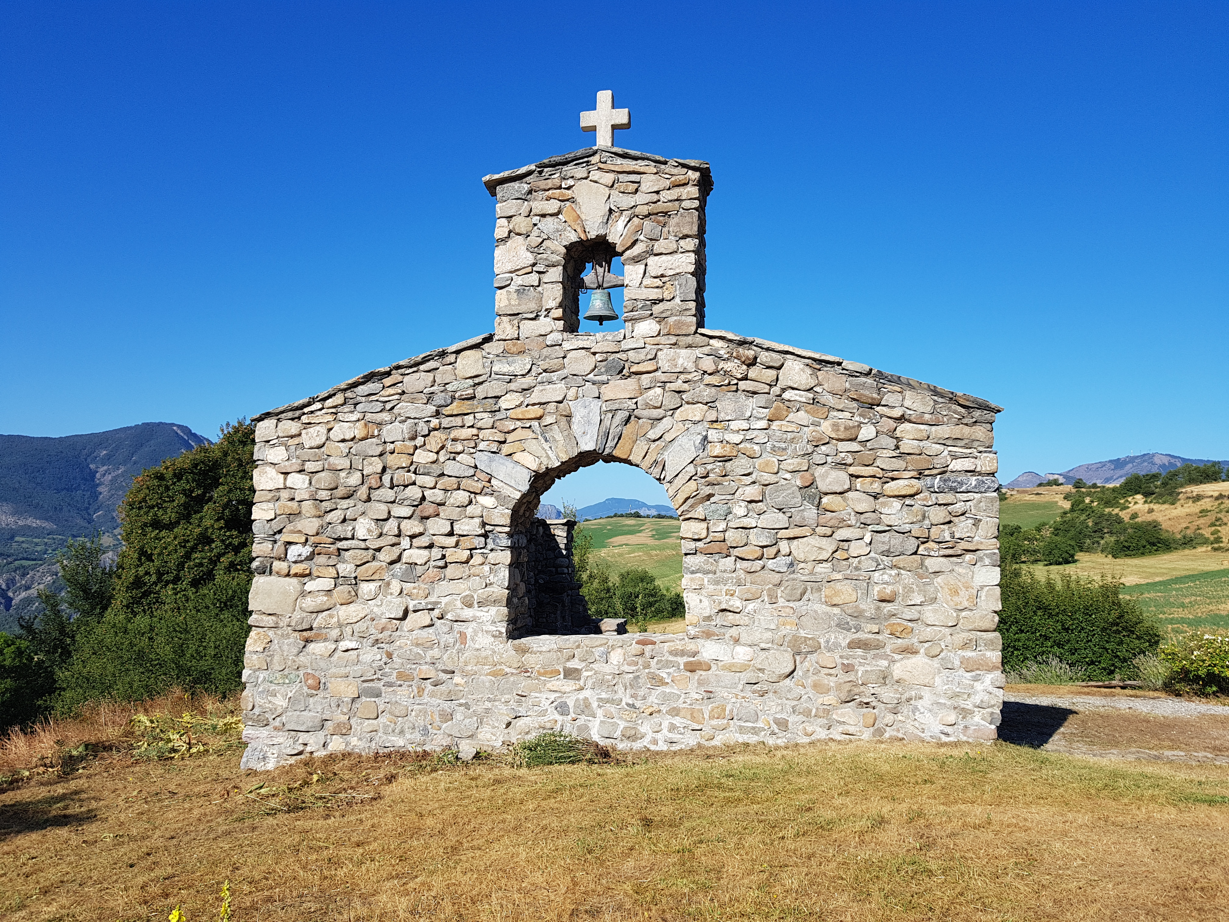 Joli belvedere sur une d'ensemble à la confluence entre l'Ubaye et la France avant le barrage de Serre Ponçon. Parking facile d'acces Producteur de miel à côté avec miel local