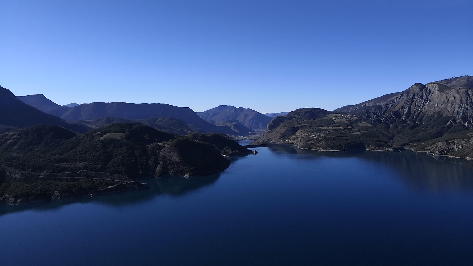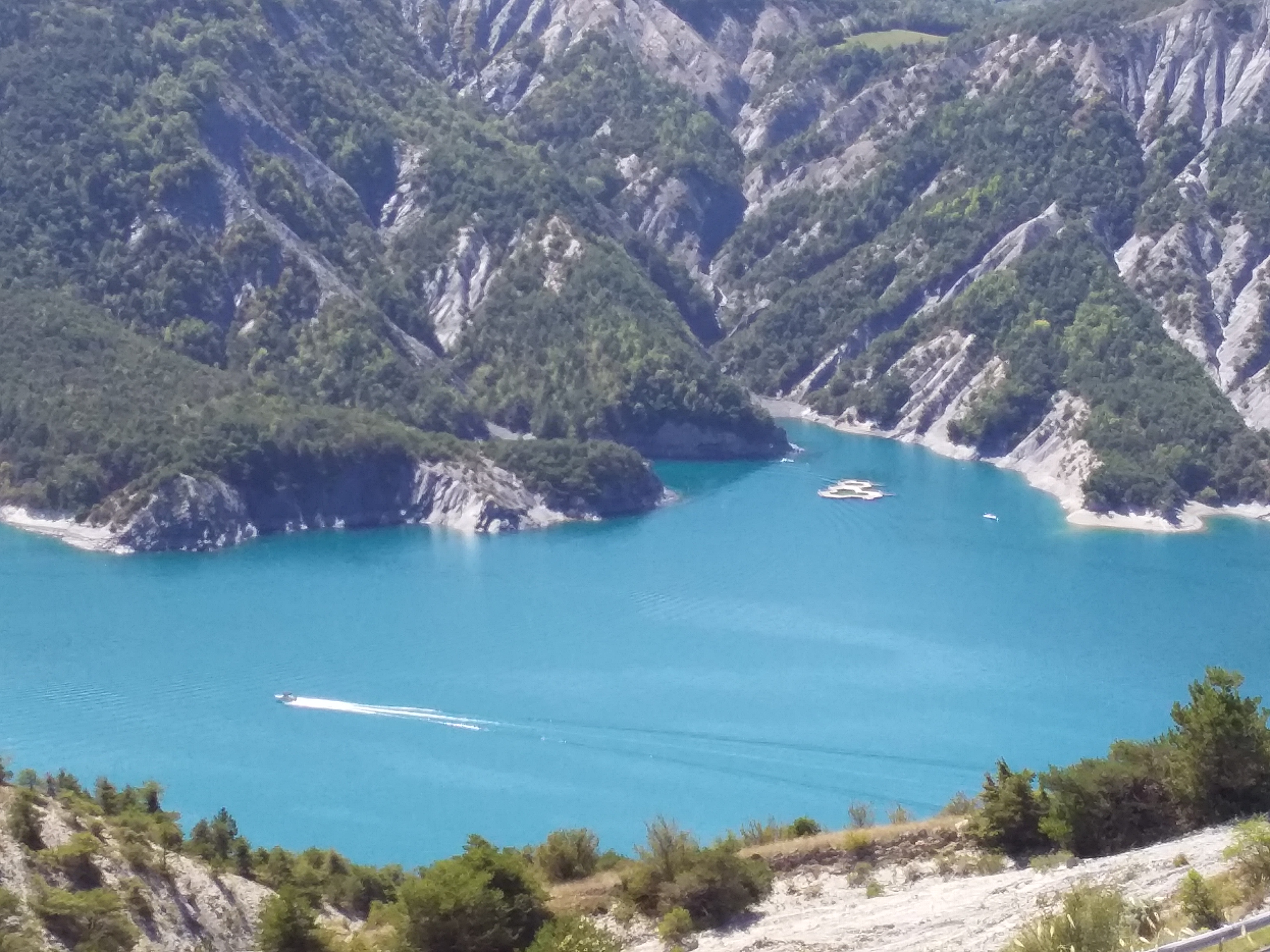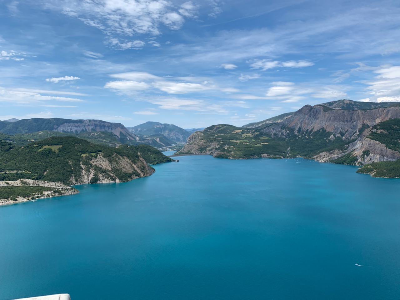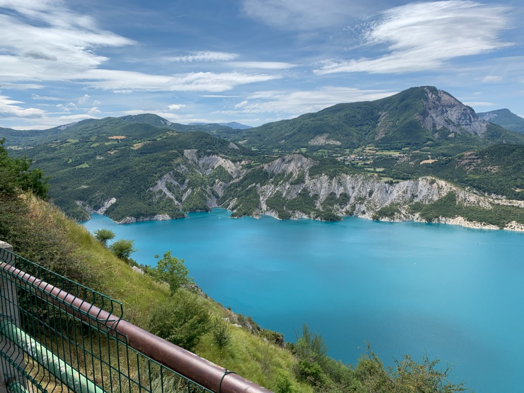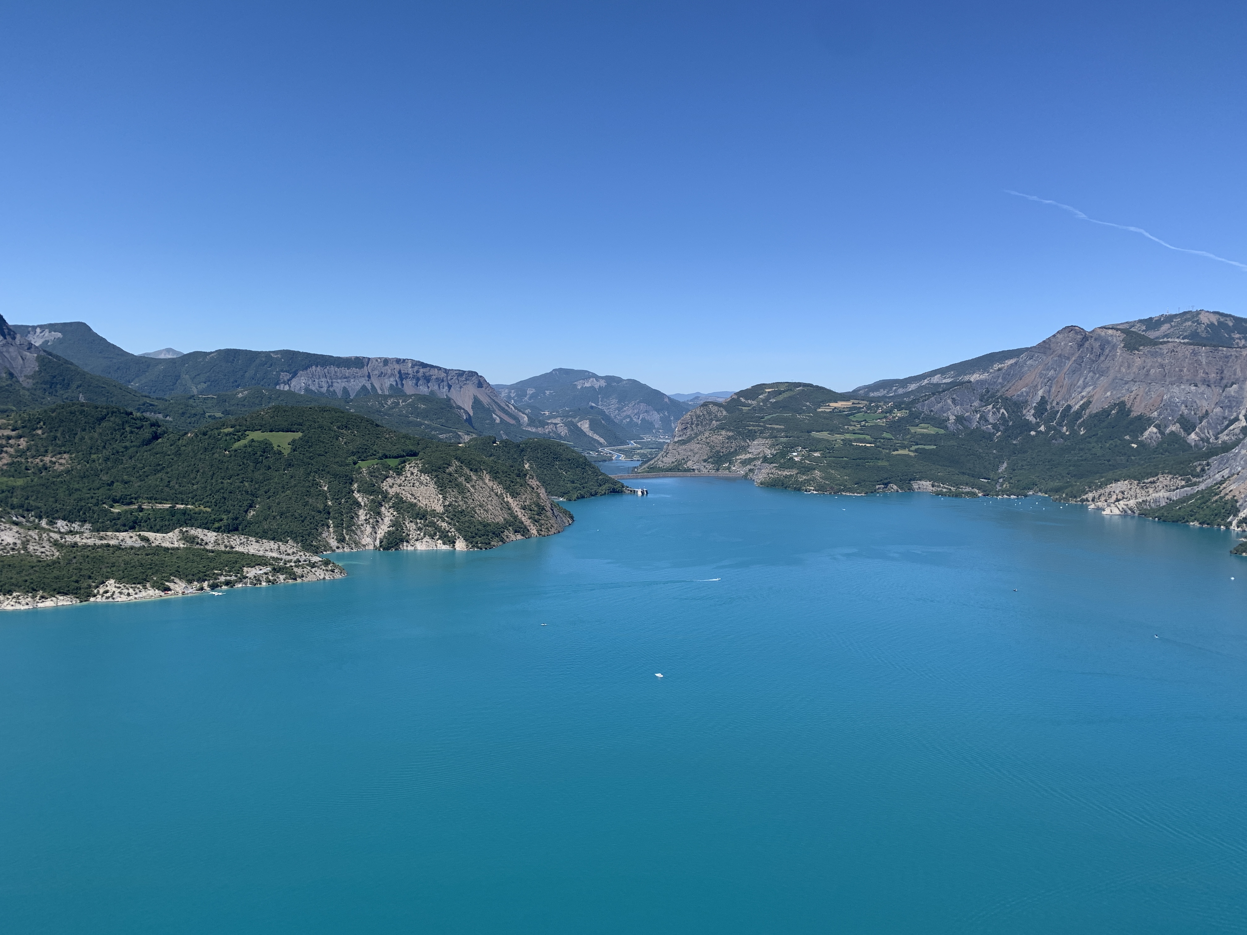 Un point de vue incroyable sur la partie sud du lac. On voit le barrage et la Durance qui se prolonge. Ce lac est paradisiaque et cette vue le prouve !