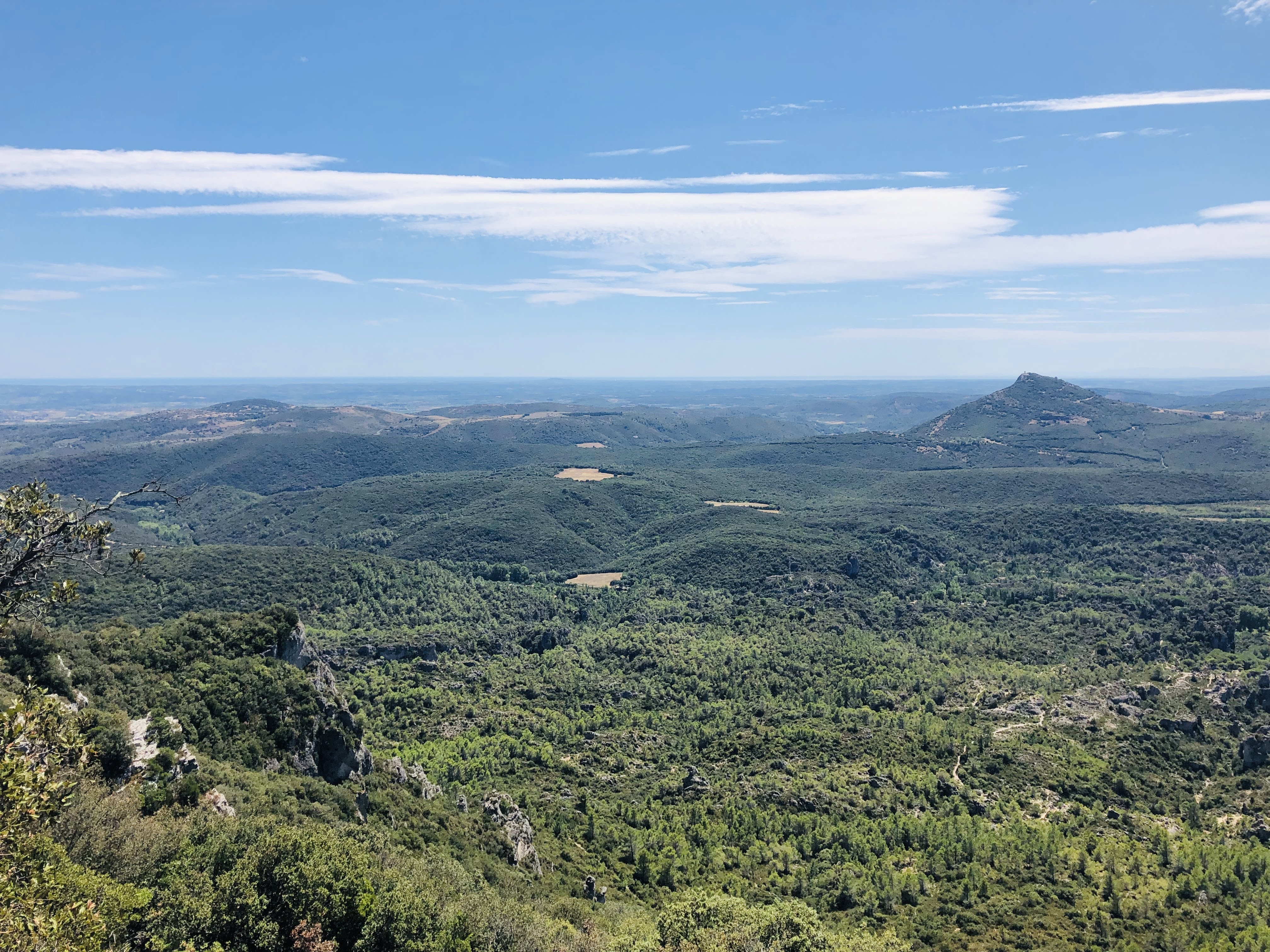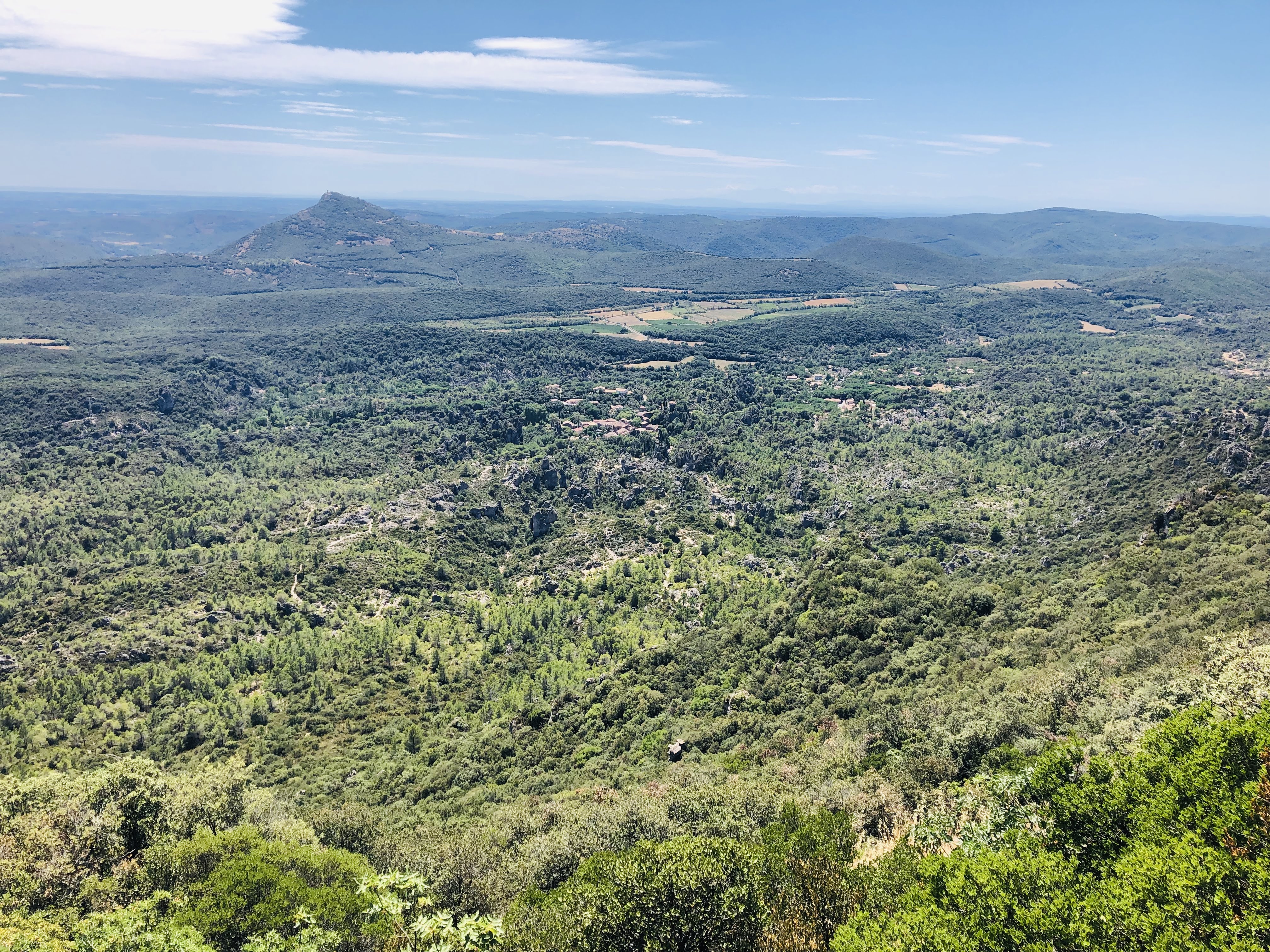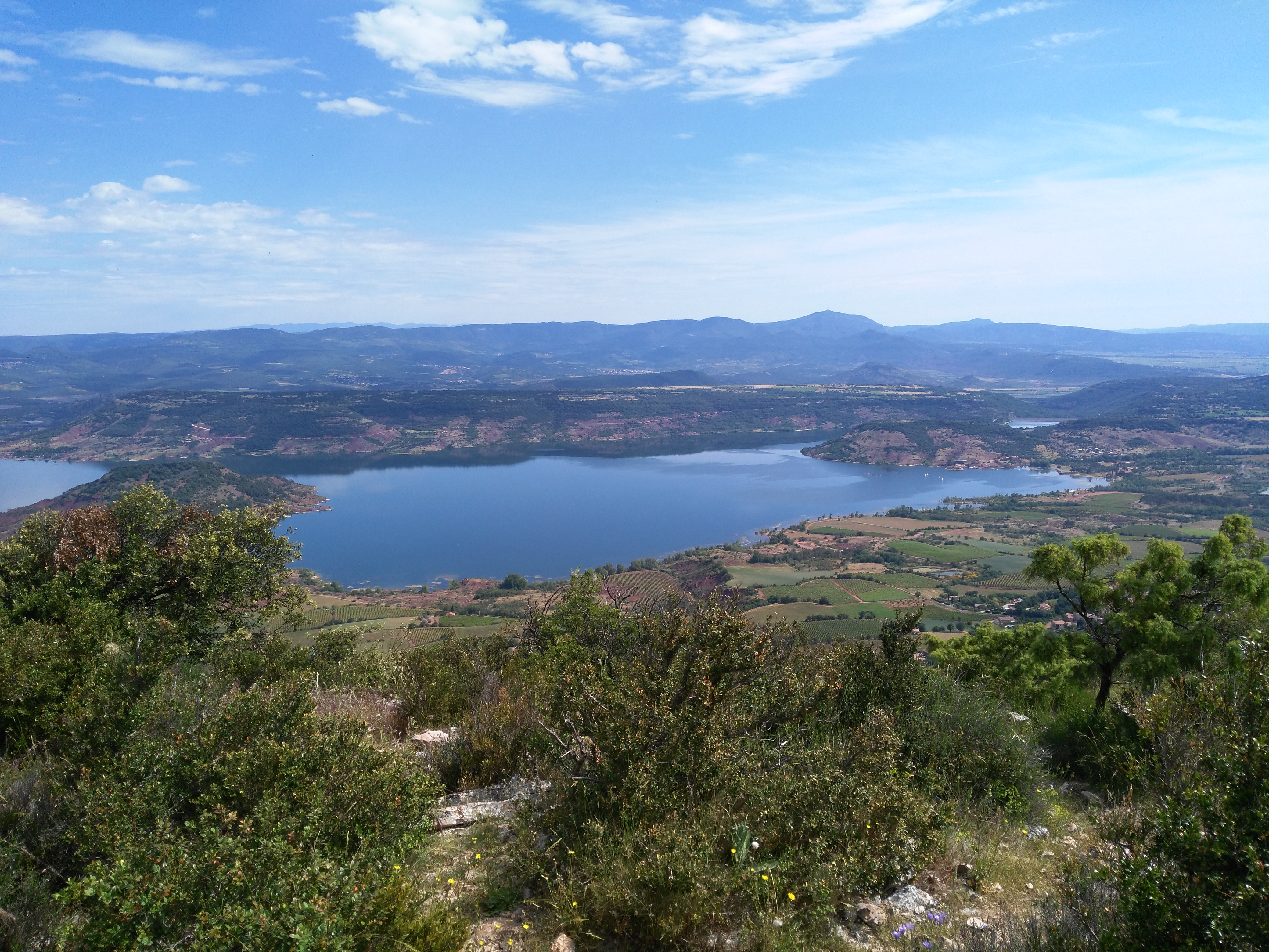 Très belle vue, au nord vers le lac du Salagou. Vers le sud les Pyrénées,et la mer.