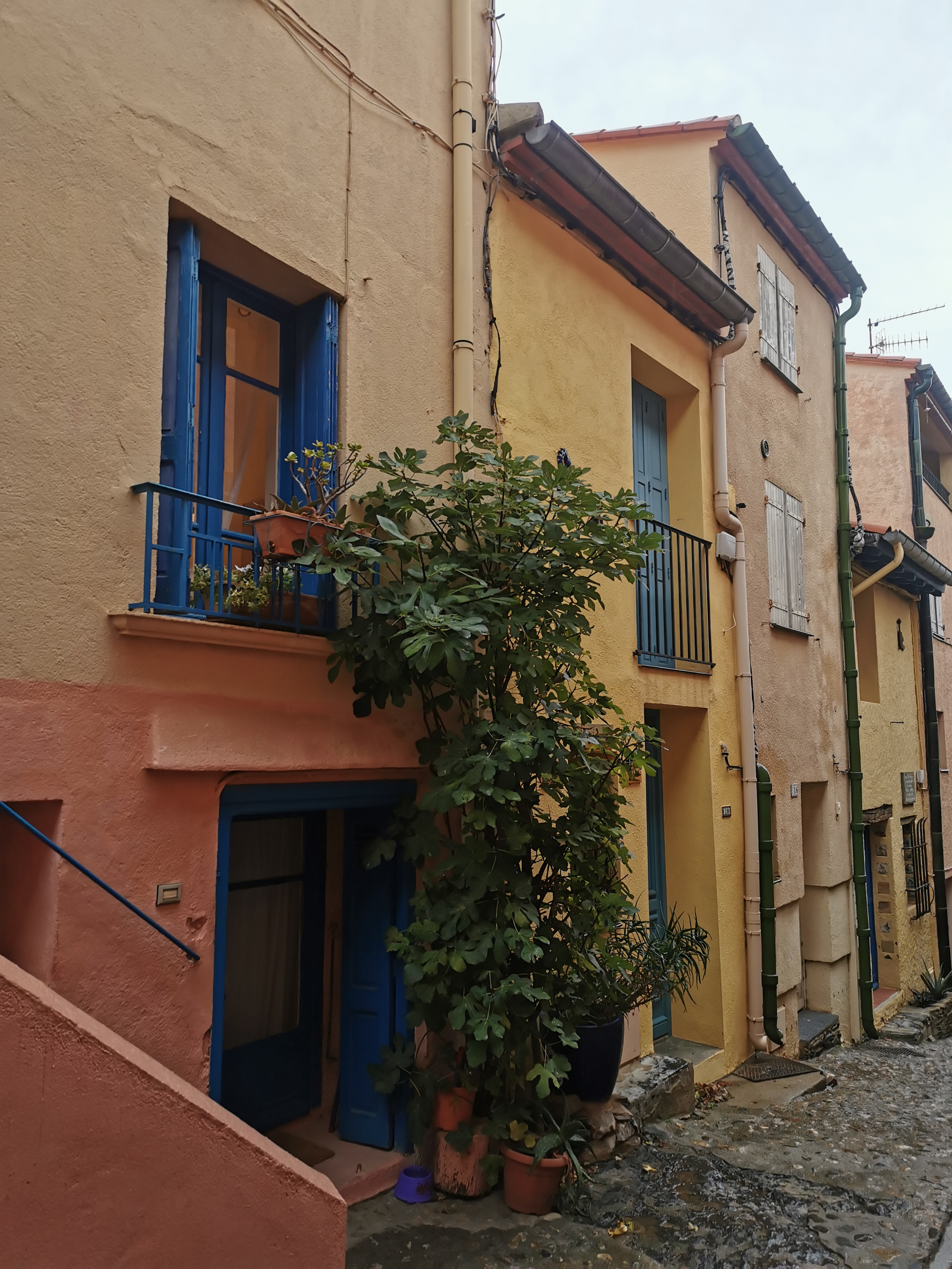 Quartier pittoresque de Collioure avec ses maisons multicolores et ses rues en pente.