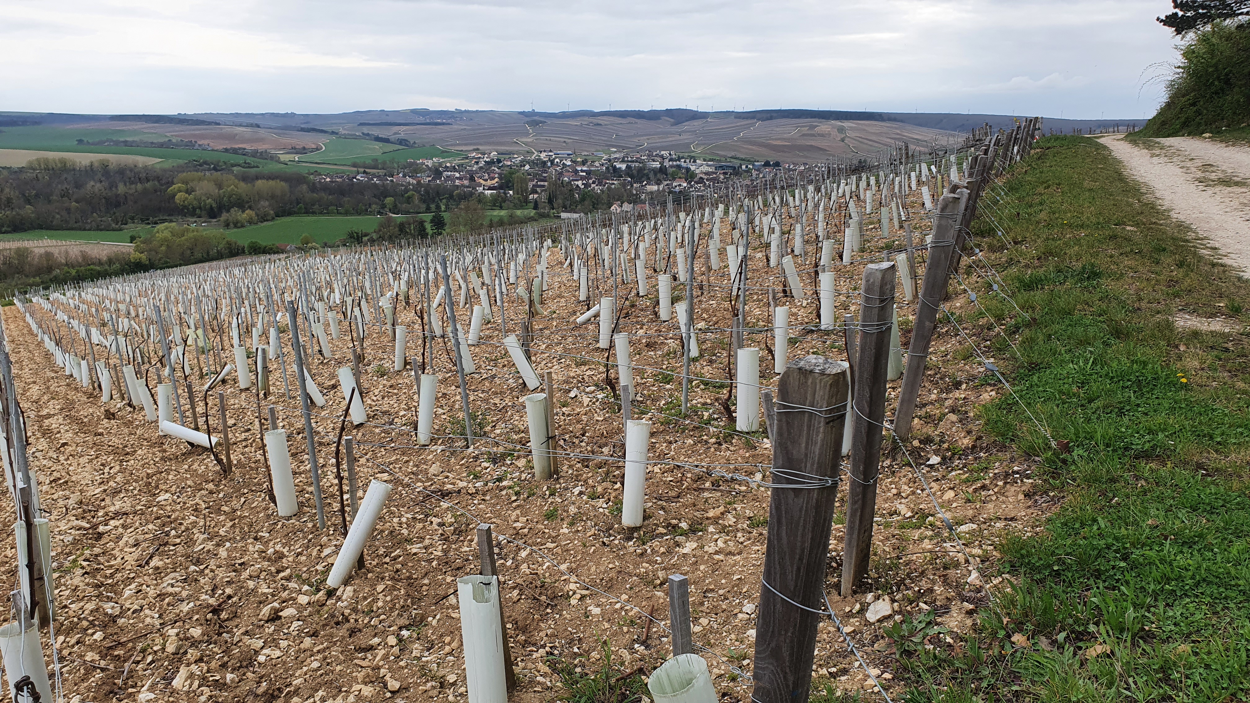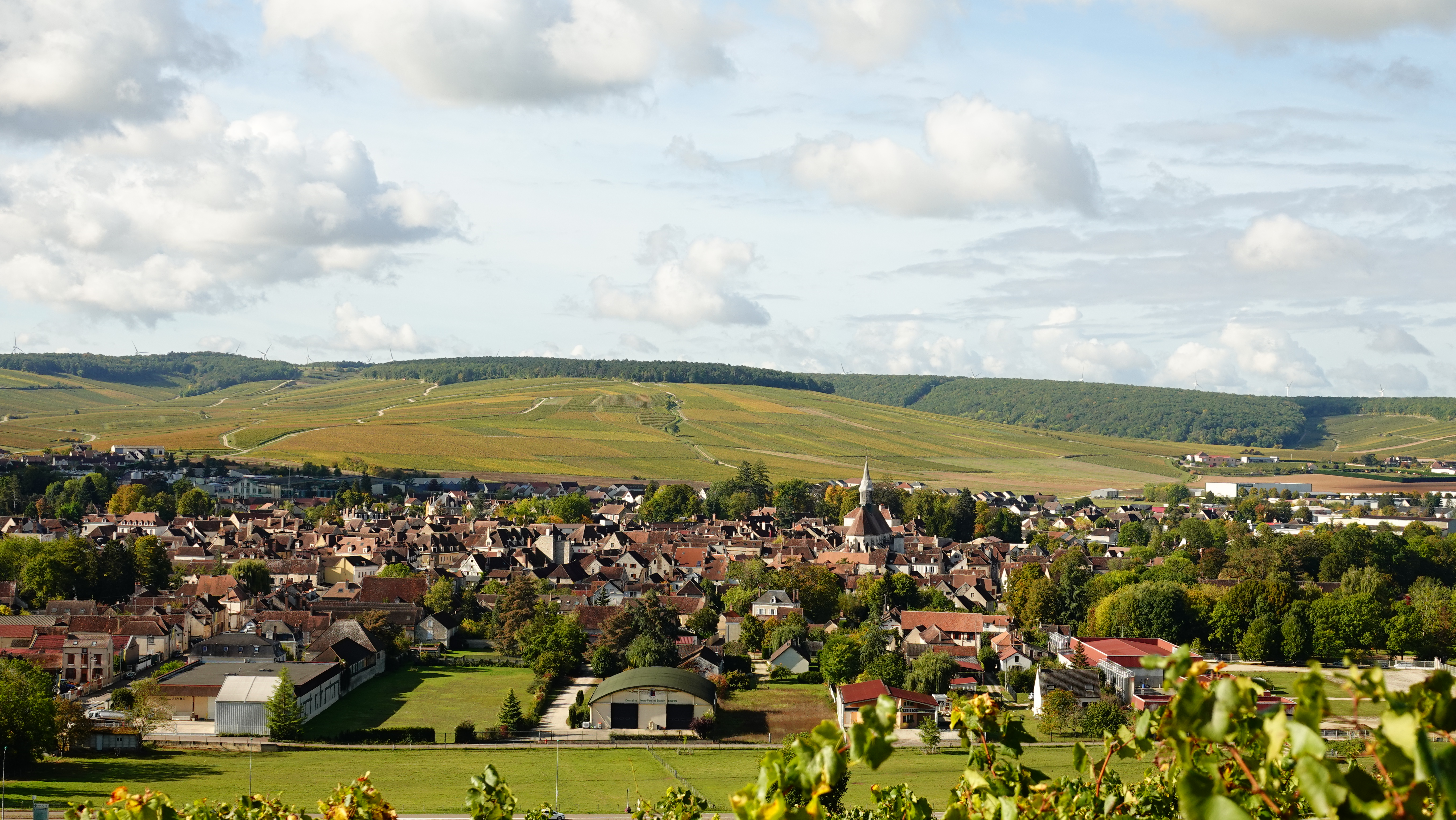 point de vue magnifique sur le village de Chablis juste devant les grands crus.